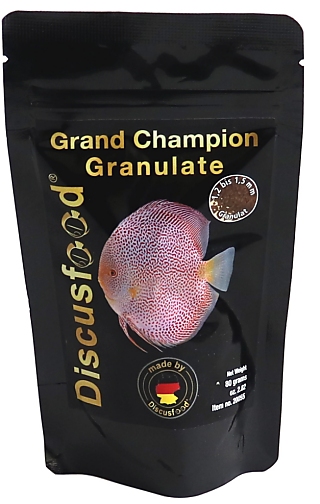 Discusfood Grand Champion Granulatet er det klassiske discusgranulat fra Discusfood og har bevist sig selv i mange år. Tilsætningen af astaxanthin understreger diskosfiskens naturlige røde farve uden at forårsage unaturlig farveovertrækning. Derudover stimulerer tilsætningen af beta-glucaner i Discusfood Grand Champion Granulat immunsystemet og AP-protect (hvidløg/løg baseret) opretholder diskosfiskens sundhed. Som alene eller hjælpefoder på den bedste måde passende.