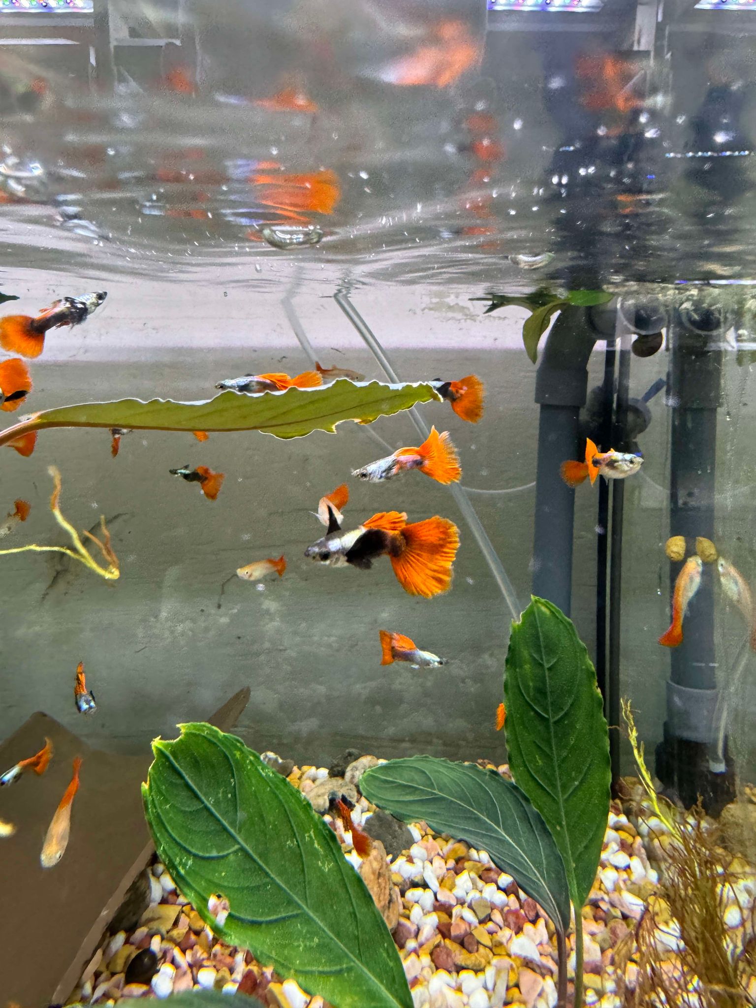 - Tilsæt 1 liter af dit eget akvarievand til spanden hvert kvarter ved store fisk, og 1/2 liter ved små fisk, vandet må gerne plaske ned så det ilter.