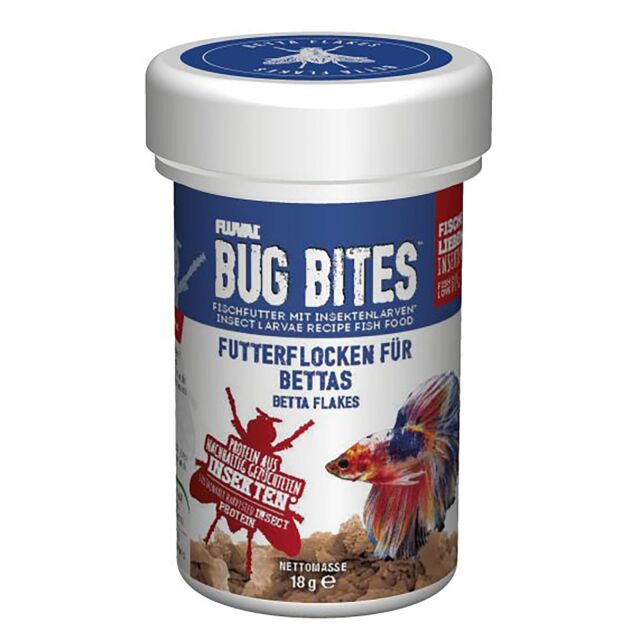 Fluval Bug Bites Food Flakes til Bettas er specielt designet til at imødekomme behovene for kampfisk. Da bettas hovedsageligt lever af insekter og larver i naturen, vil de have stor gavn af den høje andel af sorte soldatfluelarver i denne føde. Der er også tilsat vitaminer, mineraler og andre spornæringsstoffer, som er afgørende for fiskens sundhed og vitalitet. Dette foder er beriget med krill og rejer for fremragende smag og for at fremme farverne i fisken.