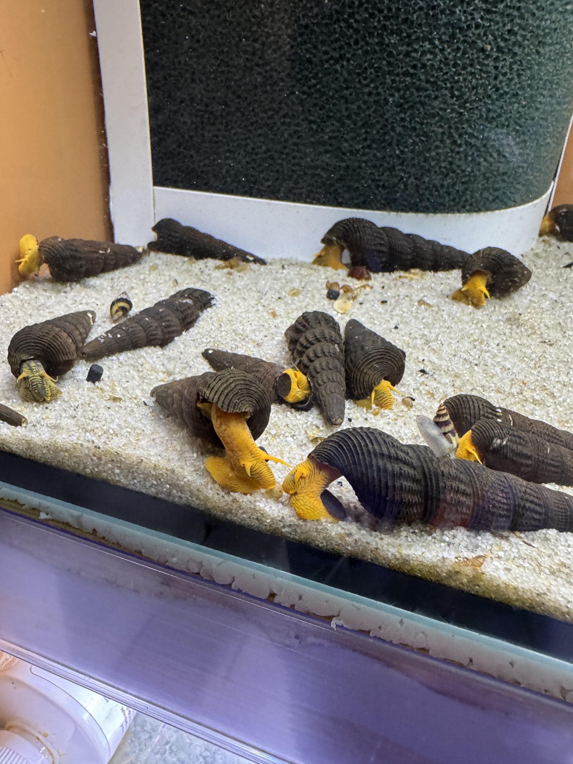 Alle Snegle skal dryppes ind I 4-5 timer så de langsomt tilvendes dit akvarievand, – ind-drypnings sæt kan købes på shoppen